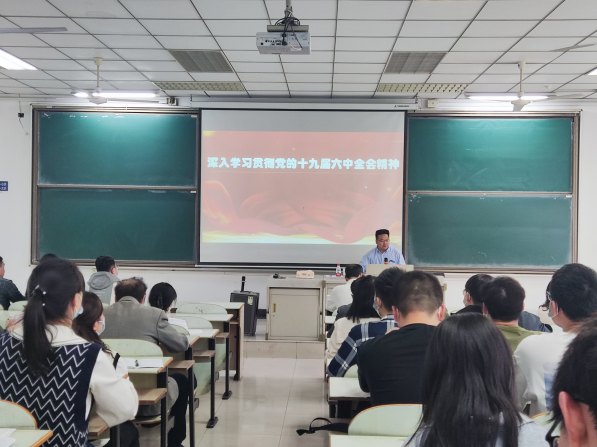 举行党的十九届六中全会精神宣讲会,马克思主义学院高敏教授做宣讲报告。学院全体正式党员、教职工参加宣讲会。宣讲会由学院党委书记凤杰主持。