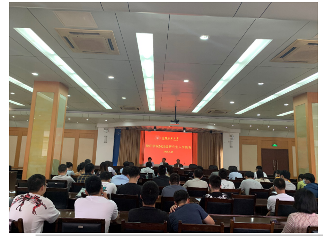 的办学历史、师资力量、教学设施及专业特色,并向同学们提出了希望,希望广大新生树立远大理想,了解研究生的学习管理规定及实施过程,学会把读书、思考、实践有效结合起来的同时做到从被动学习向主动学习、研究性学习的转变,从而提高自身综合素质和就业竞争力。最后,研究生秘书和研究生辅导员对日常管理提出了要求。