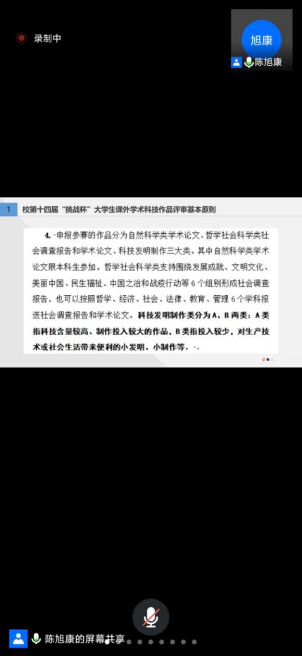 利用腾讯会议形式于线上举行了“挑战杯”大学生课外学术科技作赛启动仪式。启动仪式邀请了参赛经验丰富的陈旭康同学进行参赛经验宣讲培训,69书吧