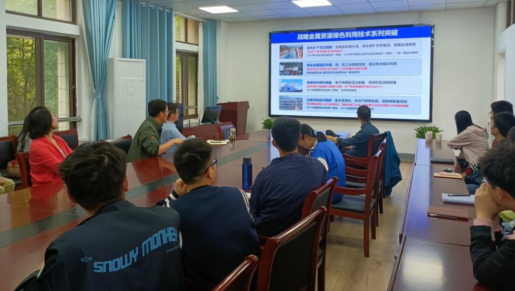 王志研究员针对战略金属资源绿色利用技术从能源金属绿色分离、再生金属低碳制造、无机固废微晶材料等多方面阐述了团队关于二次资源到高端/高值产品的“理论-装备-工艺-产品”链的研发成果。结合团队研究成果,报告针对二次资源中关键金属富集分离难的突出科学问题,就稀土稀散金属固废循环产业链的构建过程,从分子反应动力学层次,到设备工艺开发进行了广泛深入的探讨。报告结束后,专家与师生们进行了深入讨论和交流。