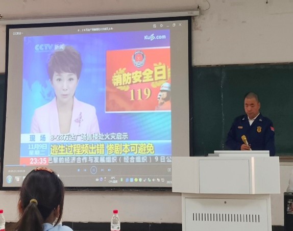 于10月23日下午在教三南103召开安全教育大会,由花山区消防大队杜贤明讲师和花山区反诈中心王勇主任进行讲解与指导。校安保部部长包恒庆、湖东路派出所所长王小飞等出席会议,会议由69书吧