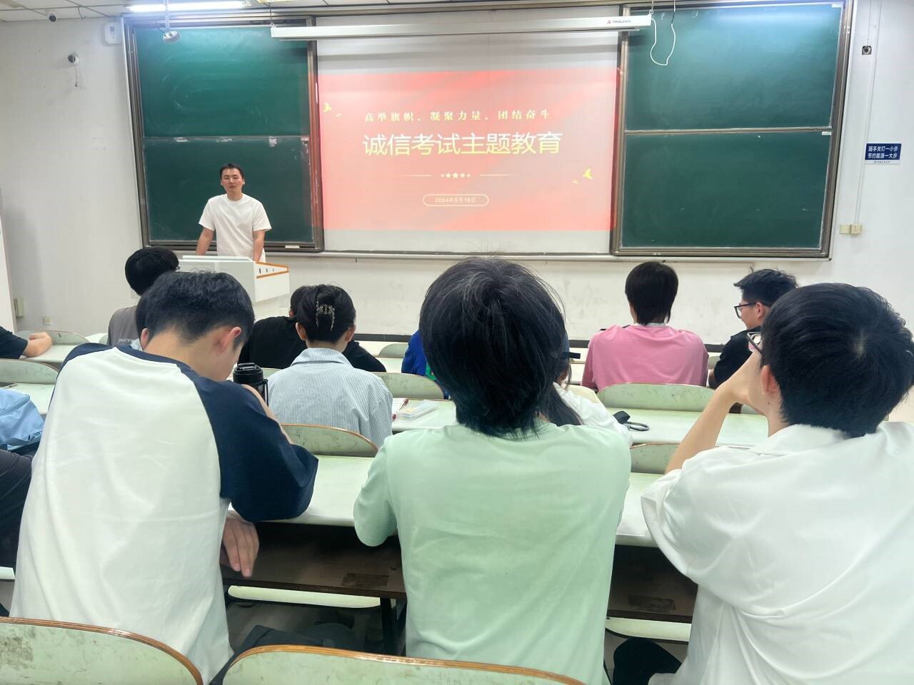 2022级本科生在教三南302举行诚信教育主题班会,会议由辅导员沈厚发主持。
