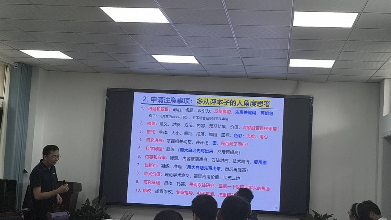 莫金汉教授指出,国家基金的总体特点是面向基础和研究前沿。他详细分析了不同类型国家基金的特点和申请要求,并重点强调了几种典型的申请不予受理原因。接着,莫教授从申请书的选题和题目、摘要、格式、研究进展、科学问题、内容和方案、创新点、意义价值以及研究基础等方面讲解了基金申请书撰写过程中的基本格式要求和注意事项。最后,莫教授强调“细节决定成败”,重申了在整个基金申请过程中注意细节的重要性。