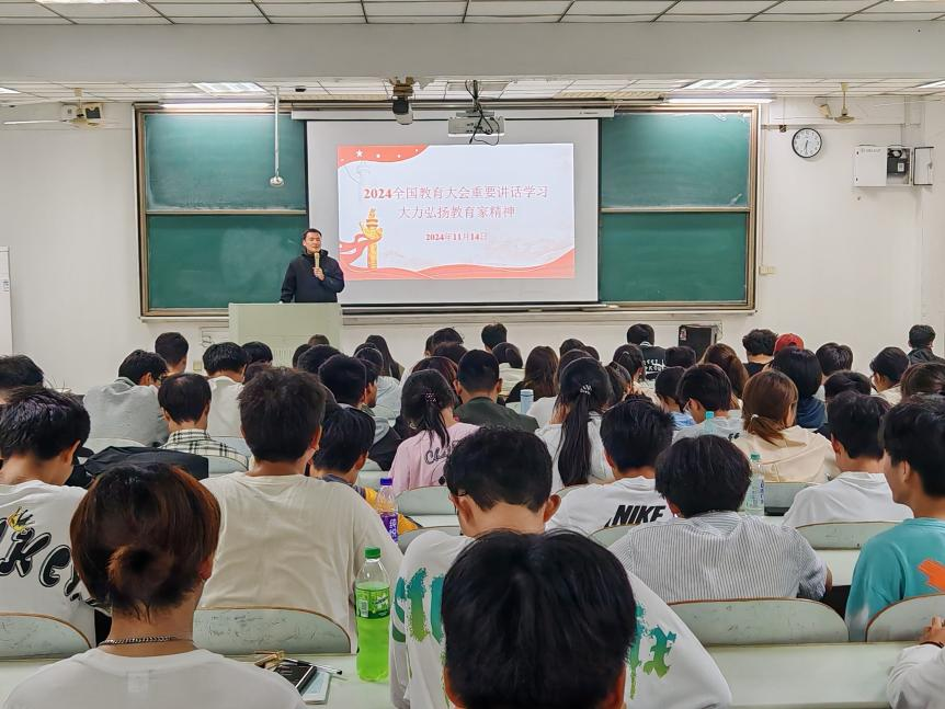 在教三南404开展了2024年全国教育大会重要讲话精神学习大会。会议由院团委书记沈厚发主持,各班级班长、团支书、学院团学社全体成员出席会议。