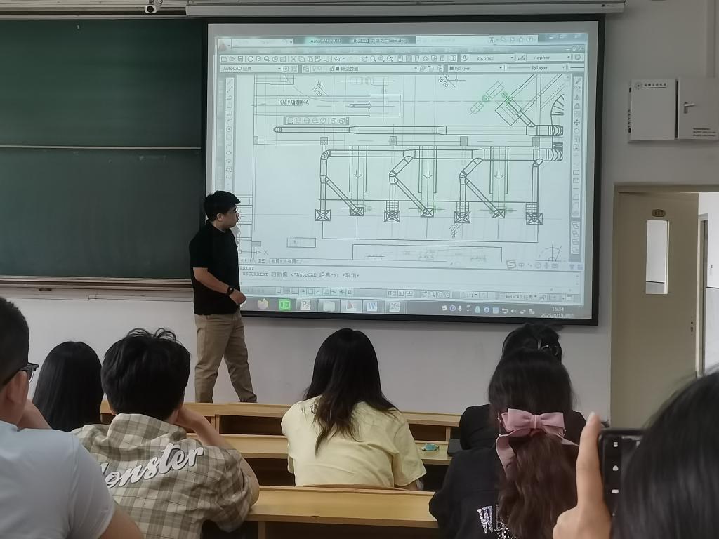 陈磊介绍了选矿厂粉尘污染现状、选矿厂除尘设计思路、选矿厂除尘点位设计、选矿厂除尘系统设计。同时,陈磊结合刘塘坊矿业有限公司150万t/a采选工程选矿厂除尘设计案例,从风量确定、管道布置与设计、除尘器和风机选型、图纸等进行了系统介绍。另外,陈磊对部分学生的设计图纸进行了指导,并回答了部分学生的提问。陈磊教授在报告中还强调,在工程设计中要严格遵守设计规范,要有安全生产与职业健康意识。