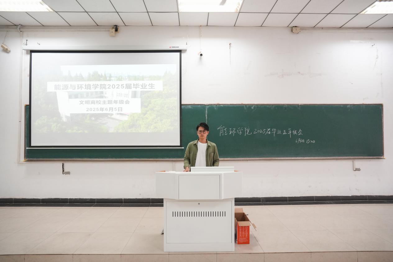 启动2025届毕业生文明离校系列活动。6月5日下午,学院于教三南203召开2025届毕业生文明离校主题年级会暨最后一次年级大会,拉开系列活动帷幕。本次会议由辅导员黄乐远主持。2025届全体毕业生参加。