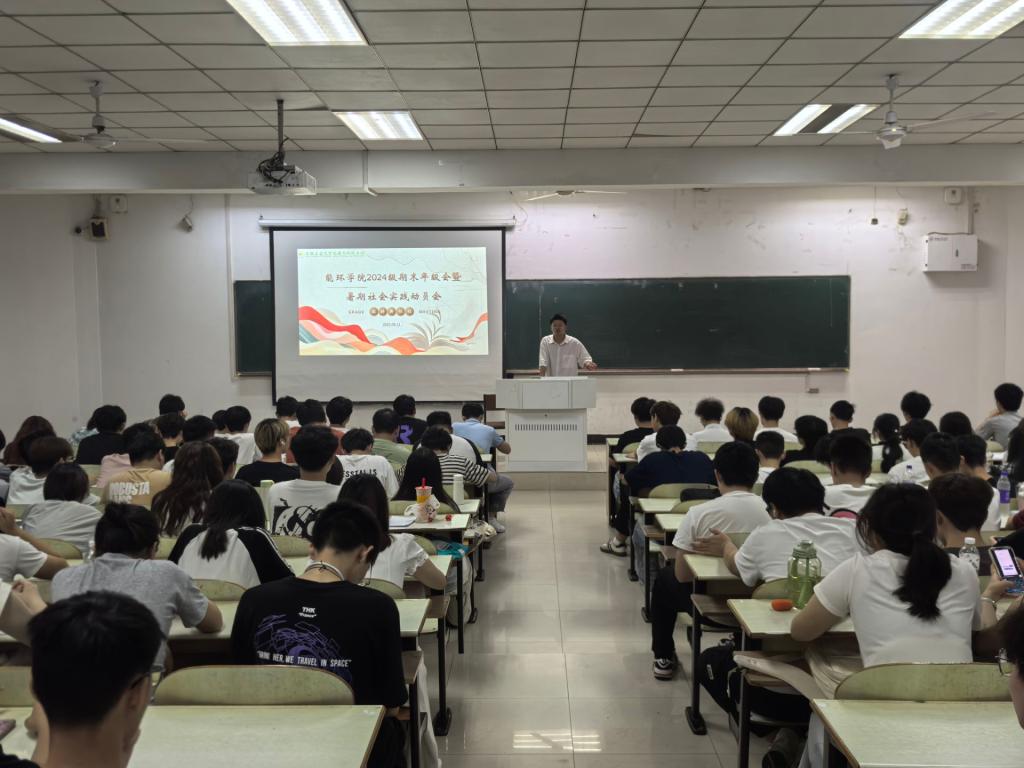 在教三南103教室召开2024级学生期末年级会暨暑期社会实践动员会。会议由院团委副书记、2024级辅导员范浩东主持,全体2024级学生及各暑期社会实践团队队长参加会议。