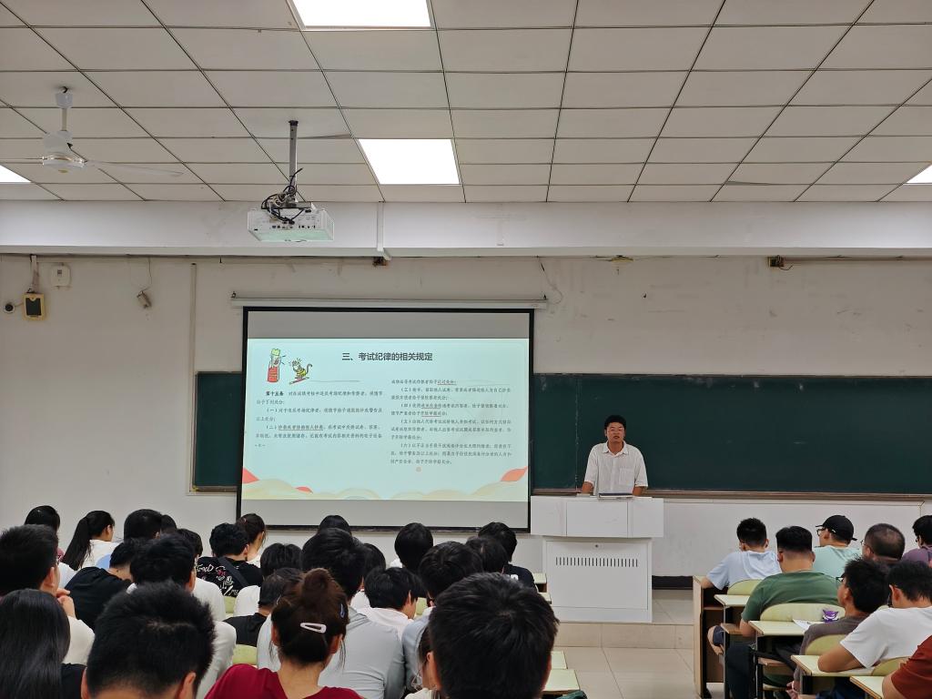 学生手册》中补考、考试纪律、请销假制度等关键内容进行深入解读,强调学生应熟悉培养方案、严守考风考纪、增强规则意识。吴飞则就新学年评奖评优与困难生认定等相关政策作了系统说明,激励学生争优创先、艰苦奋斗、知恩感恩,营造积极向上的集体氛围。此外,两位辅导员还结合近期社会热点与网络教育资源,开展涵盖防范电信诈骗、交通安全、宿舍防火防盗与用电安全等多方面的日常教育,切实提升学生安全意识和自我防护能力。