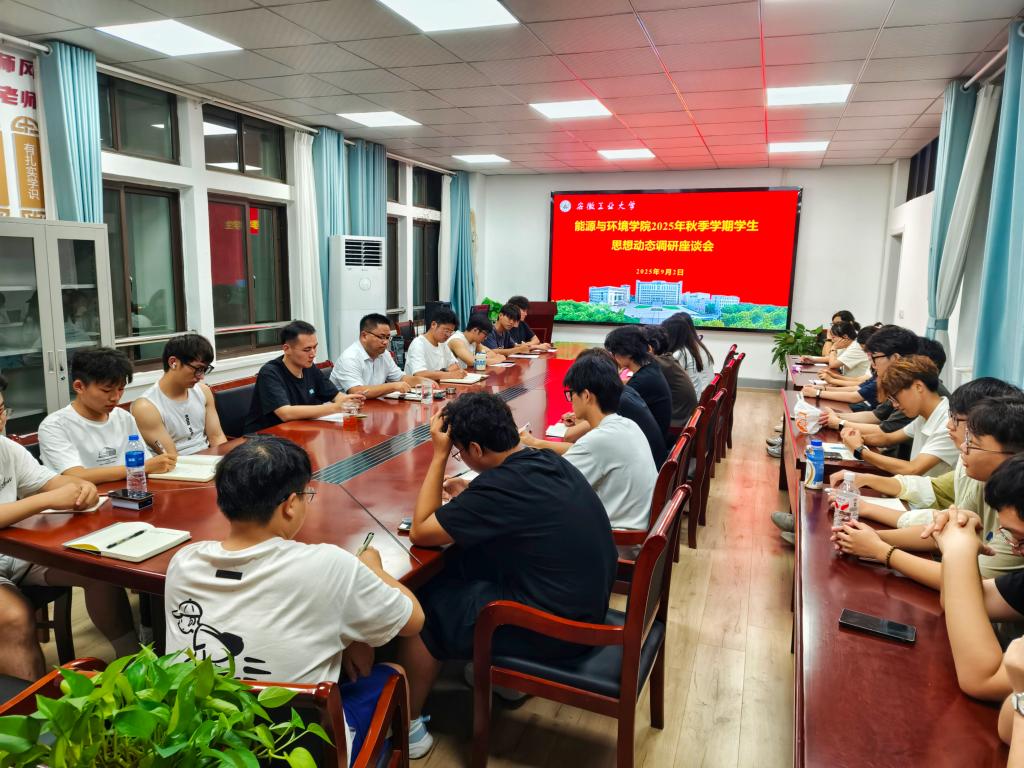 于9月2日在能源楼325会议室召开了2025年秋季学期学生思想动态调研座谈会。会议由院团委书记沈厚发主持,院党委副书记、副院长卫军帅参加活动,各年级主要学生骨干及相关辅导员参会。