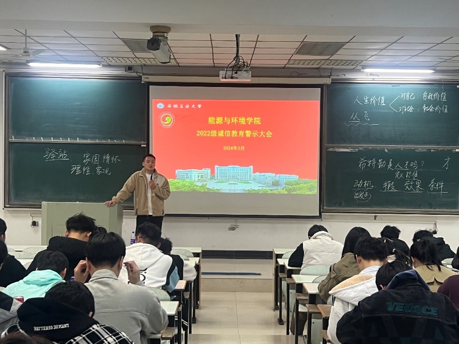 2022级全体学生于3月14日晚在教三南403召开诚信教育警示大会。会议由辅导员沈厚发主持。