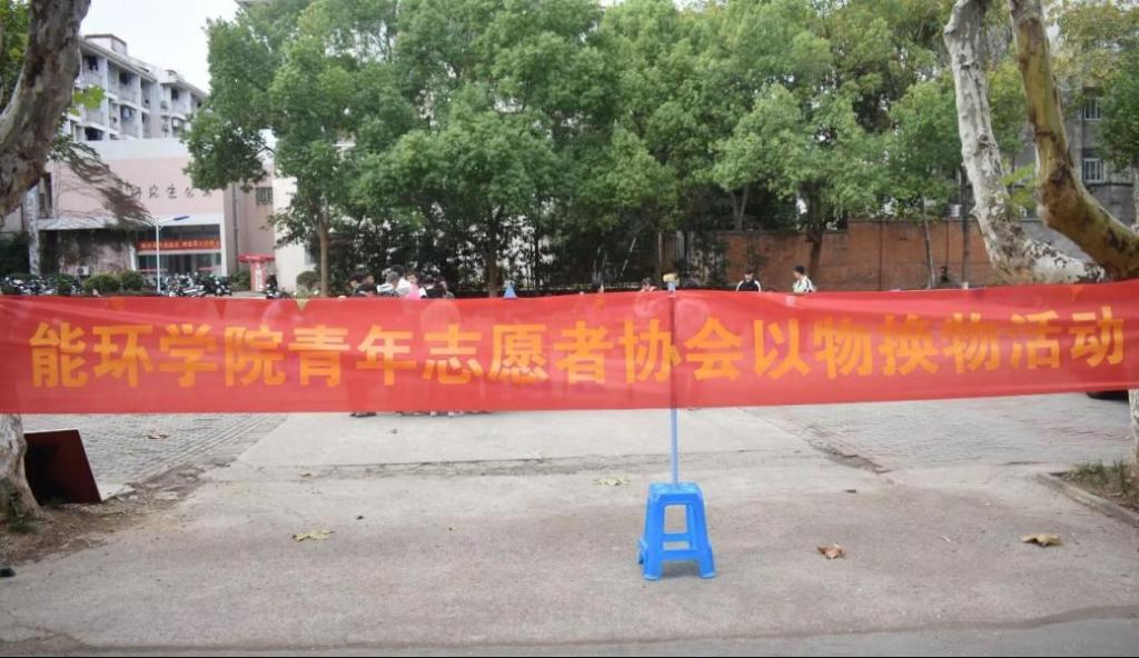 为积极倡导环保节约理念,让闲物不闲,让废物变宝,2022年10月29日,69书吧 青年志愿者协会组织志愿者在5号宿舍楼小广场开展以物换物活动。