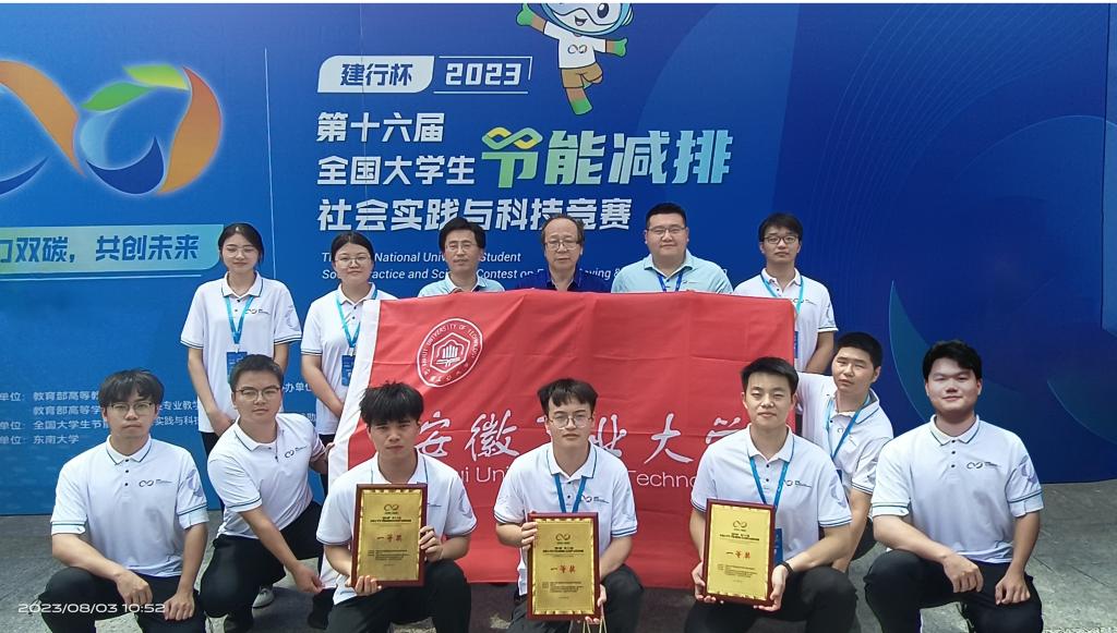 、建工学院和化工学院共同承办,安徽威达环保科技股份有限公司协办的校级选拔赛于今年3月正式启动,通过广泛宣传动员,共吸引全校61支团队参赛,433名同学参与项目制作,促进了学生创新设计能力、工程实践能力和社会调查能力的提升,为实现“双碳”目标集聚创新力量。