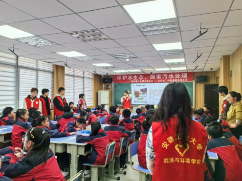为激发小朋友们的听课兴趣,在充分保证安全的前提下结合专业特色、可操作性和趣味性,志愿者们集思广益,群策群力,课前精心准备,开展了多次备课会,向专业课老师和指导老师请教商谈后,拟定了“污水和污水处理”为主题的趣味小课堂。志愿者们精心设计了“毛细现象”净水和酸碱中和颜色变化两个小实验,作为授课内容穿插在课堂上展示,力求在精准把握“绿色环保”主题的同时使宣讲生动形象,让中小学生们开心轻松的氛围中能有所收获。课程结束后小朋友们纷纷和家长分享自己的收获,他们的肯定也为实践队员下一次宣讲注入了无限动力。